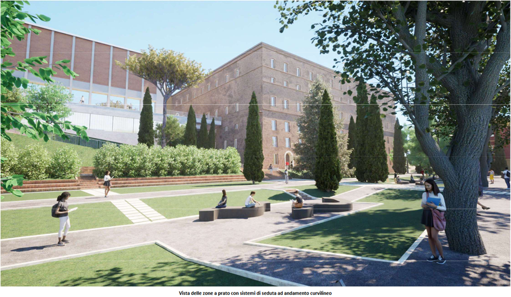 I lavori, che si concluderanno nel mese di dicembre 2024, sono parte di un progetto generale di più ampio respiro, firmato dall’architetto-paesaggista Andrea Pochini. Questo progetto è volto non soltanto a recuperare le aree verdi, che nel corso del tempo sono state soggette a un naturale degrado, ma soprattutto a restituire spazi di vita e di socializzazione per l’intera comunità universitaria, dotandoli di nuovi arredi e allestimenti infrastrutturali.