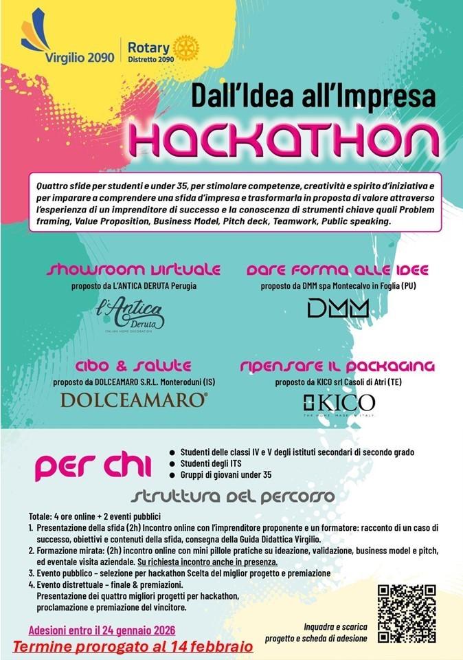 - Dall'Idea all' Impresa - HACKATHON per giovani under 35 ( scadenza per la presentazione delle domande 14 febbraio 2026)